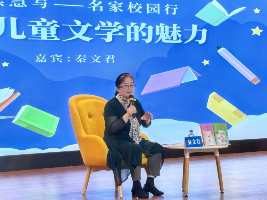 “秦老师,您什么时候开始写作的?”“写作有什么窍门吗?”“贾里的同学为什么叫小奥特曼呢?”孩子们小手如林,个个都想着与老师来一次面对面地互动。秦文君现场分享了《彼得·潘》《美丽的乔》等经典名著,并结合其自身的创作经历,向大家娓娓道来了写作的奥秘:热爱和坚持。写作从来不是一蹴而就的,要像打磨小宝石一样,反复修改,才能绽放光彩。她鼓励孩子们一定要多读书,多思考,不光是读,更要“会读”,不仅能写,还要能“写出思想”,这就是她推出“百位作家助力慧读慧写公益活动”的初衷。